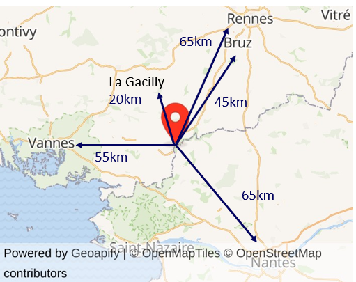 Pas de logement disponible à Redon ? Jetez un œil à la carte ci-dessous pour visualiser Redon et les villes proches : Rennes, Nantes, Vannes, La Gacilly et Bruz.